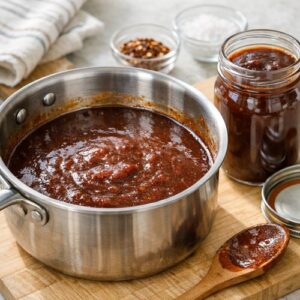 Traditionally, barbecue sauce comes from regional American smoking and grilling customs. In the South, you’ll find thin, vinegar-based sauces. Move to the Midwest, and you get thicker, sweeter versions. This recipe sits somewhere in the middle—it honors both traditions while being completely customizable to your family’s preferences.