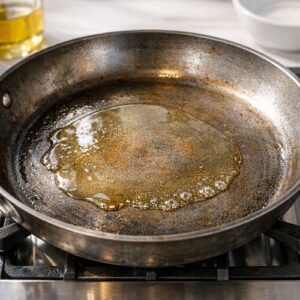 Place a large oven-safe skillet (10 to 12 inches) over medium heat. Add your cooking oil and let it heat for about 60-90 seconds. You’ll know it’s ready when the oil shimmers across the surface and moves easily when you tilt the pan. If you see wisps of smoke, your heat is too high—back it down slightly to medium.