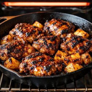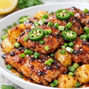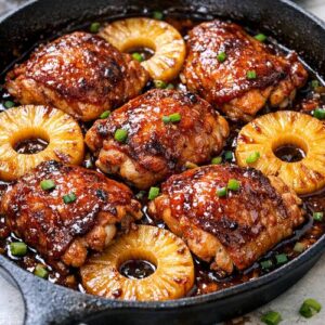 This dish is a modern American twist on classic BBQ traditions, enhanced with tropical sweetness from fresh pineapple. The magic happens when you combine tender chicken thighs with a housemade pineapple-BBQ glaze, then finish everything under the broiler to create a caramelized, slightly charred exterior that’s absolutely irresistible.