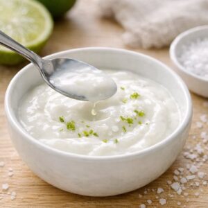 In another small bowl, combine your coconut yogurt (or dairy yogurt alternative), the remaining ½ teaspoon of lime juice, and a tiny pinch of sea salt. Whisk together until smooth. This becomes your cooling, tangy drizzle—it balances the earthiness of the beans and the richness of the avocado. The lime juice cuts through any heaviness and adds brightness.